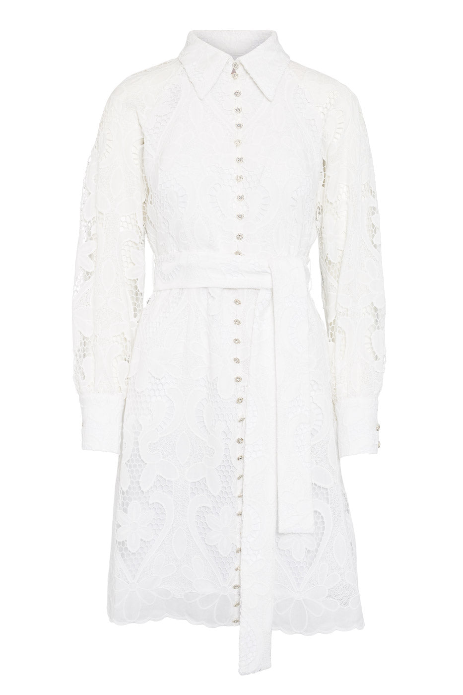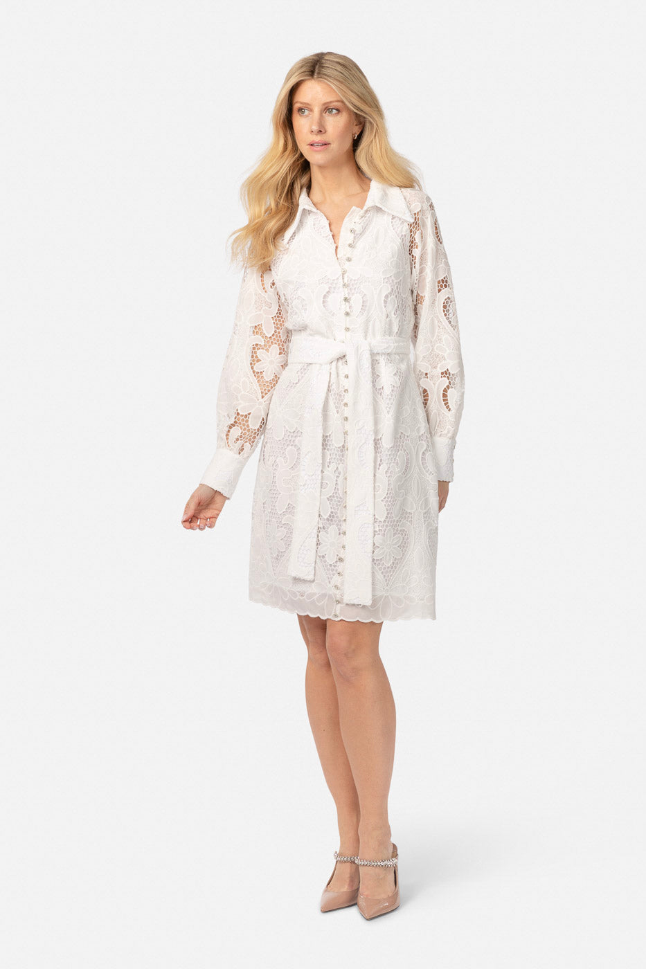 Utstrål tidløs eleganse i vår favoritt Bertine kjolen, som har delikate diamantknapper og en klassisk krage for et raffinert preg. Beltet i midjen gir form, og gjør denne kjolen til den perfekte blandingen av chic og sofistikert for enhver anledning.