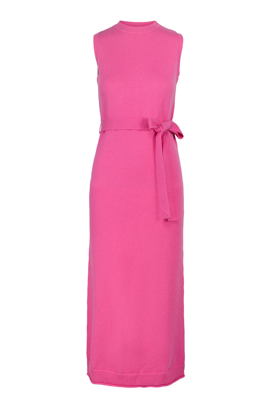 Stilig strikkekjole som er perfekt for våren eller sene sommerkvelder. Kjolen har løs passform og belte i midjen. Stil den med dine favorittstøvler eller joggesko for et komplett utseende.