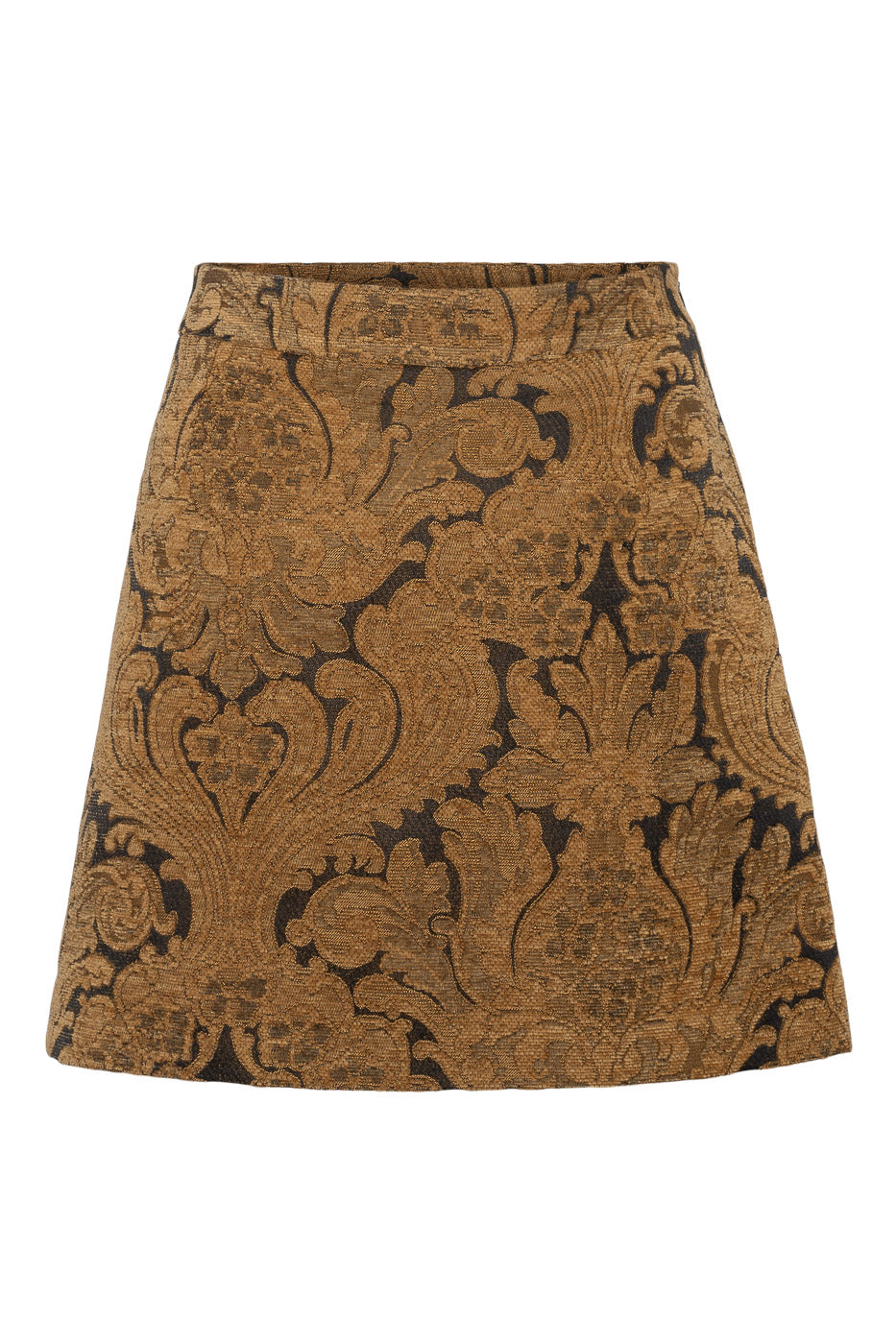 Fløyelsminiskjørt med A-linjeform og et rikt brunt mønster. Et allsidig plagg som passer perfekt til høsten - lett å style både opp og ned til enhver anledning.